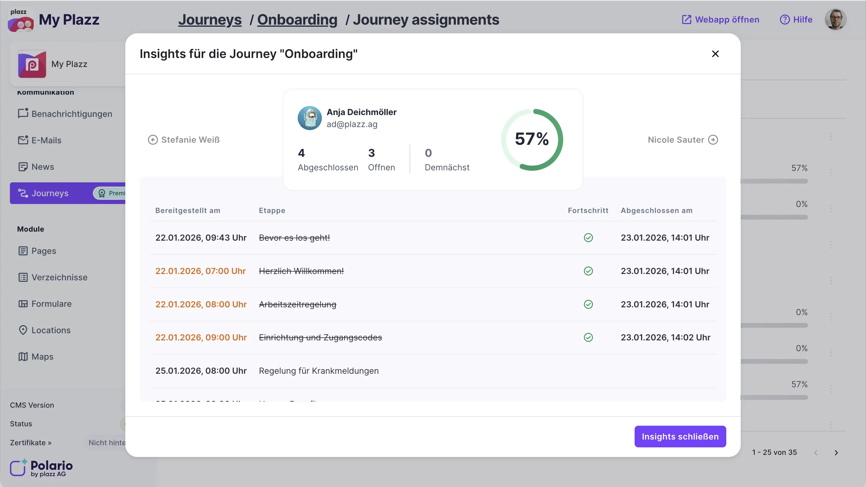 Das aktualisierte Journey Modul gibt jetzt klare Einblicke in die Nutzung und den Fortschritt von Journeys: