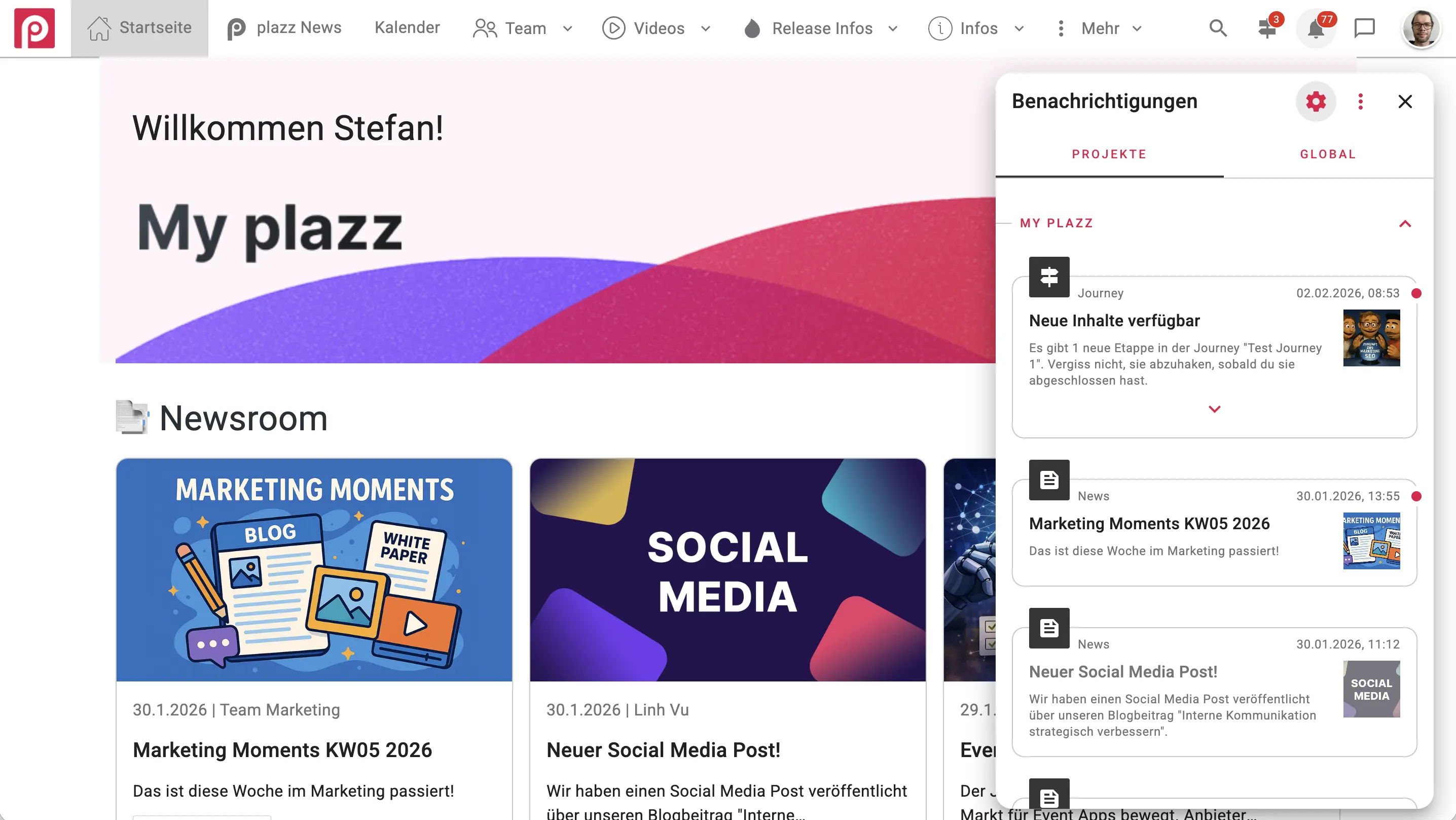 Neu in 5.5 ist ein intelligentes Benachrichtigungssystem: Sobald eine neue Etappe innerhalb einer Journey freigeschaltet wird, werden Plattformnutzer automatisch benachrichtigt – via Push, E-Mail und In-App.