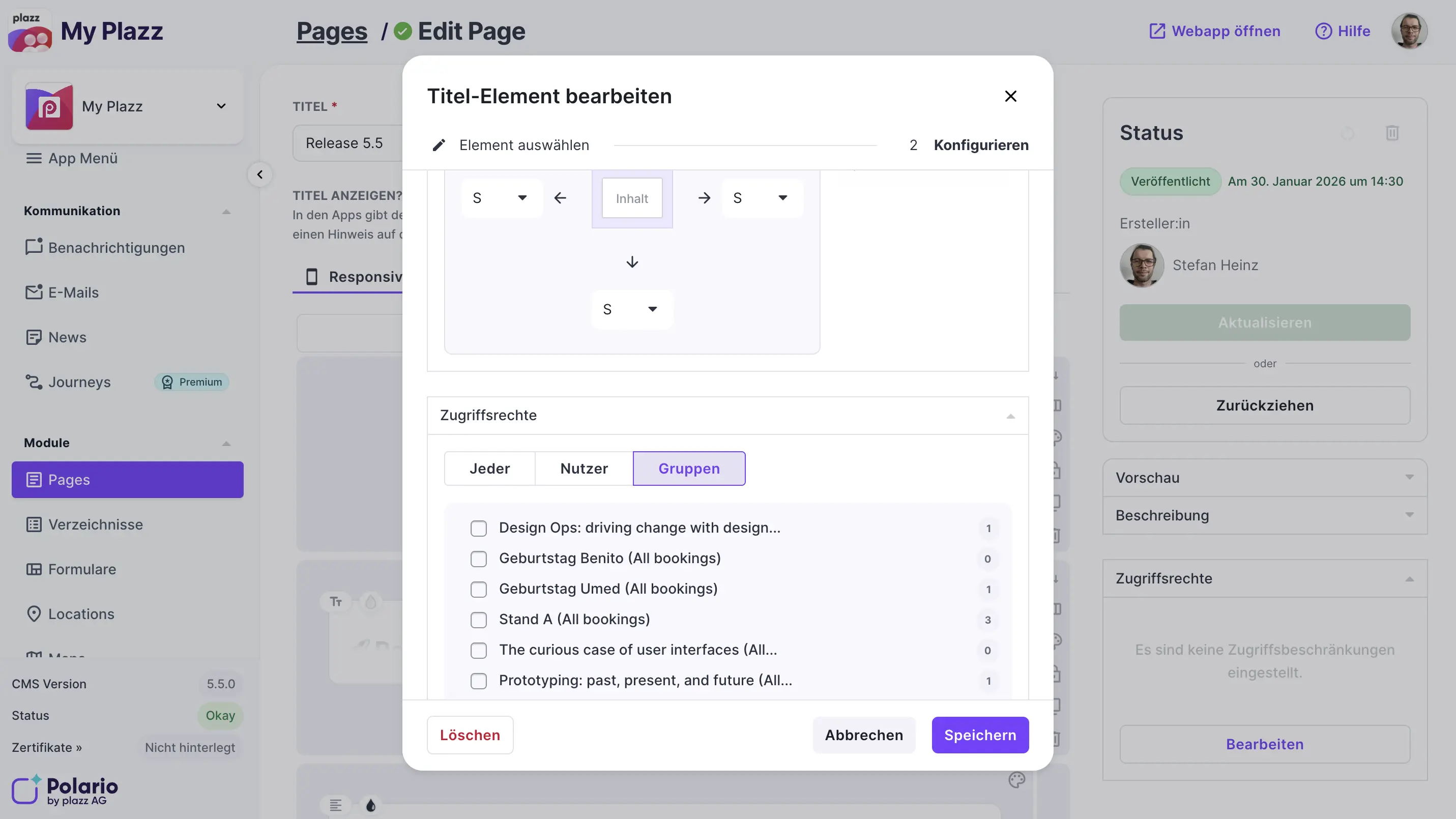 - Zugriffsrechte auf Sektionen- und Elementebene innerhalb einer Page